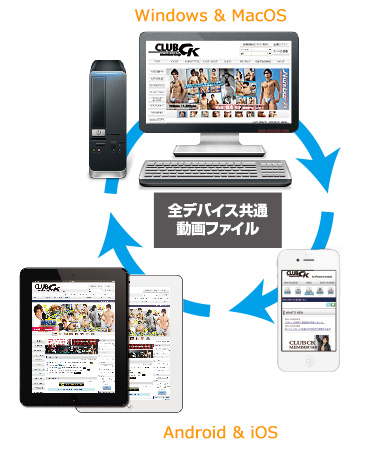 どのデバイスからお買いいただいたファイルでも、別途購入することなくすべてのデバイスで動画の再生が可能です。